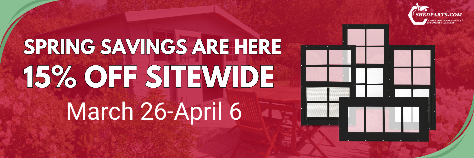 Thank you for stopping by Shed-Parts.com! We proudly serve as the E-Commerce channel for Apple Outdoor Supply, a trusted leader to the outdoor building and furniture industries for over two decades. We've curated a wide selection of the shed windows and playset accessories, hardware, and outdoor products you are looking for. Enhance your outdoor living space with our exceptional assortment of shed, playset, and outdoor living accessories. If there's anything you need, please let us know.