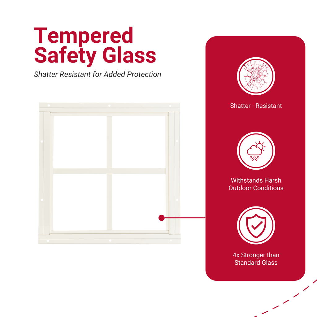 Give your shed or playhouse a stylish upgrade with this cute 12" x 12" SQUARE flush mount window from APPLE OUTDOOR SUPPLY! Add this attractive fixed window to elevate your design and bring more light into your space! It is made of a plastic PVC material that offers durability at an economical price.