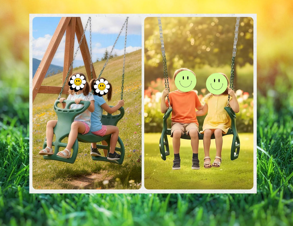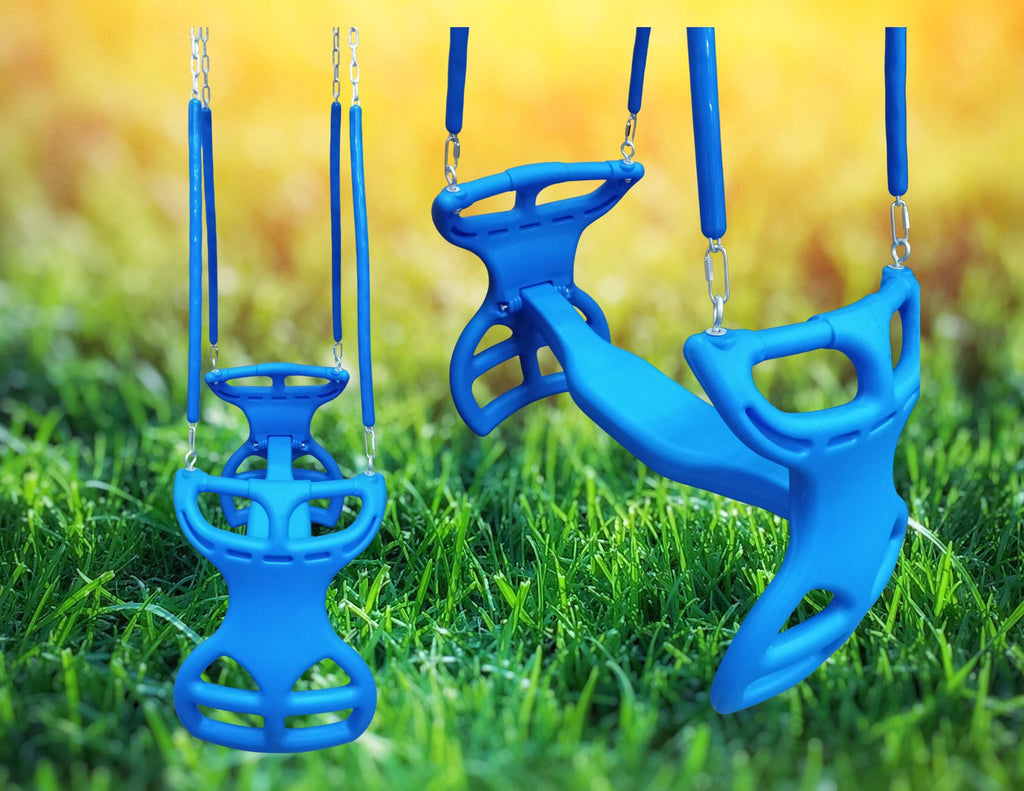 Bring timeless fun to your backyard with the APPLE OUTDOOR SUPPLY Glider Swing Kit! Our Double Glider Swing Kit is a dual-ride, tandem swing designed for two children to enjoy the fun together. The glider features double footrests and double handles that are molded into the swing and have a comfort grip pattern for added safety and your peace of mind. The unique two seated design, and handles that swing independent of each other, promote back-to-back gliding action and teamwork. Sharing active outdoor play provides imaginative value and creativity to build endurance, strength and endless joy for your kiddos. Made from durable, resilient and weather-resistant plastic for continued outdoor use, our dual glider swing kit will double the laughter in your backyard for a long time to come! Safe, sturdy, and ready to install, it’s the perfect upgrade for any playset, jungle gym or swingset.